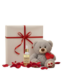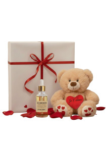 Coffret Saint Valentin Luxe - Huile Massage Bio & Ourson Artisanal