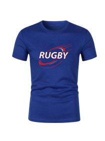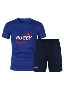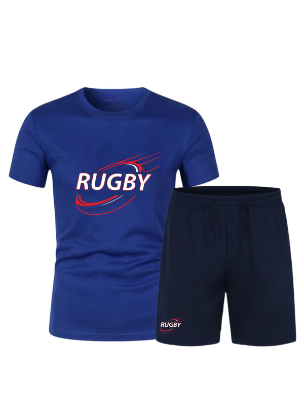 Design Sportif : Graphisme dynamique "RUGBY" sérigraphié sur le torse et rappel du logo sur le bas du short.