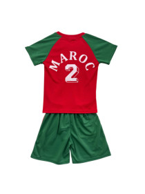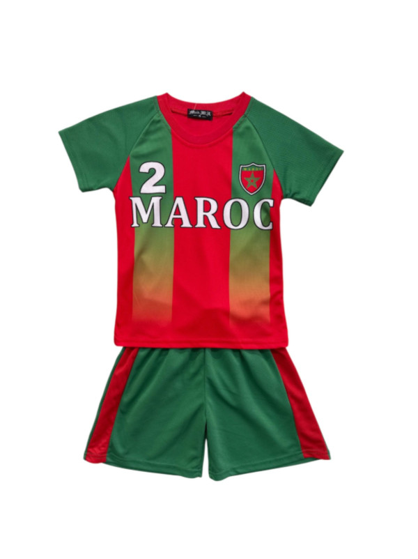 Faites vibrer votre enfant aux couleurs du Maroc avec cet ensemble sportif au design inspiré ! Composé d'un maillot et d'un short léger en polyester, cet ensemble est idéal pour jouer, s'entraîner ou soutenir son équipe préférée.