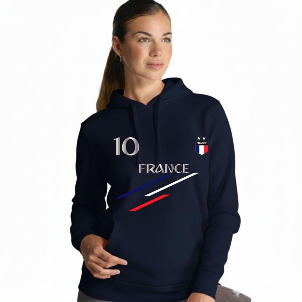 Sweat à Capuche Femme bleu marine - Design Inspiré de la France - Numéro 10