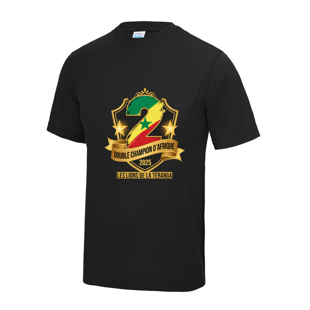 Maillot foot noir inspiré Sénégal - Double Champion 2025 - Homme