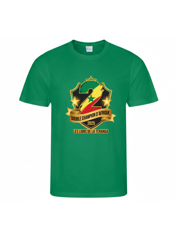 Logo de Victoire : Une impression haute qualité sur la poitrine célébrant le sacre de "Double Champion d'Afrique 2025".
