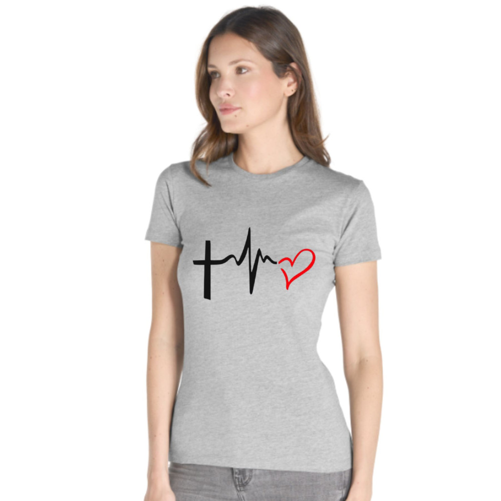 Ce T-shirt pour femme au design épuré est une véritable déclaration de style et de sens. En associant la symbolique de la spiritualité à l'énergie de la vie, ce graphisme unique — mêlant une croix et un cœur vibrant sur une ligne de battement cardiaque — crée un visuel captivant. C’est la pièce idéale pour exprimer votre personnalité au quotidien ou pour offrir un cadeau chargé d'émotion.