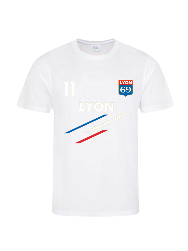 Affichez votre fierté lyonnaise avec style ! Ce maillot au design épuré et moderne est l'équipement idéal pour les jeunes supporters des Gones. Arborant fièrement le nom « LYON » associé au mythique numéro 11 et à un blason "Lyon 69", il reprend les codes historiques de la ville avec ses bandes dynamiques tricolores.