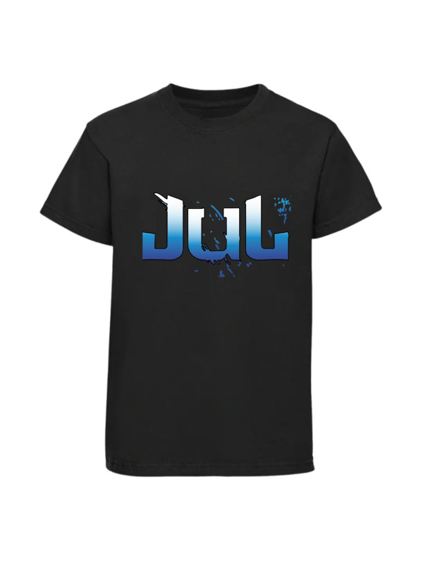 Affichez un style frais et dynamique avec ce t-shirt enfant à l'effigie de l'artiste JUL. Ce modèle se distingue par son logo iconique retravaillé dans un dégradé de bleu azur, apportant une touche moderne à la tenue de votre enfant. Que ce soit sur fond blanc pour un look épuré ou sur noir pour plus de contraste, l’impression haute qualité résiste au temps.